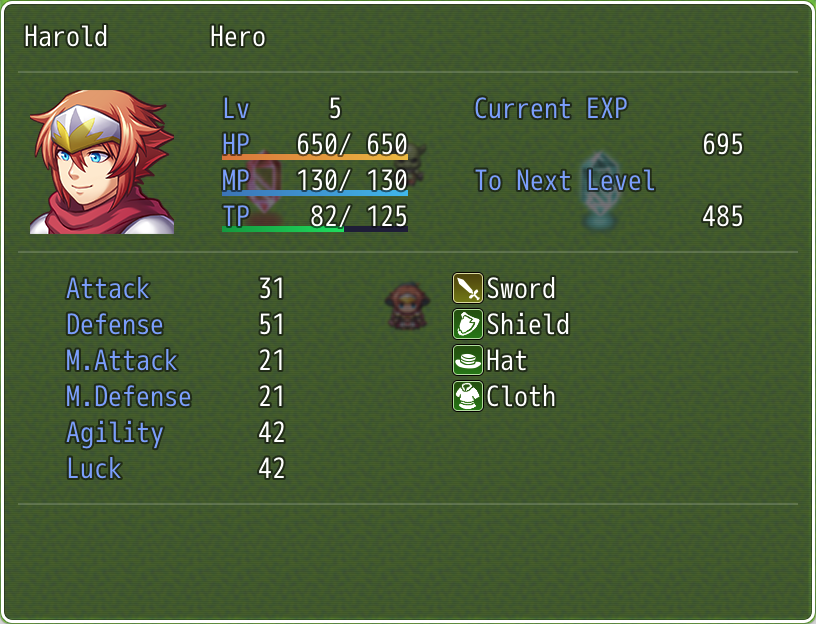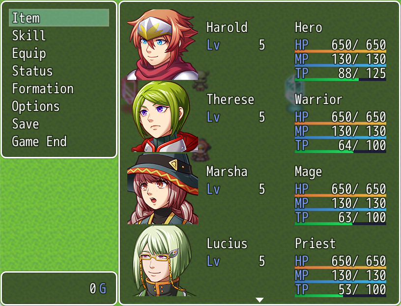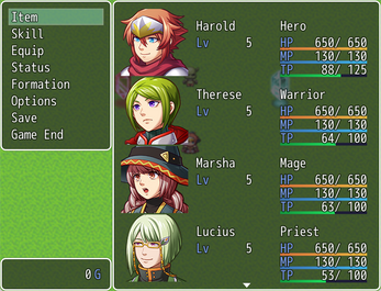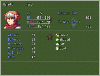 This gives TP functionality to match everything that HP and MP already has. In addition, it provides parameters to customize the functionality of the built-in TP system, or even disable aspects of it.
